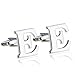 INBLUE Men's Rhodium Plated Cufflinks Silver Tone Initial Letter Shirt Business Wedding