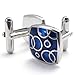 KONOV 2pcs Rhodium Plated Square Men's Shirts Vintage Pattern Cufflinks Wedding, Blue Silver, 1 Pair