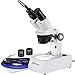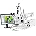 AmScope SE306R-AZ-E2 Digital Forward-Mounted Binocular Stereo Microscope, WF10x and WF20x Eyepieces, 20X/40X/80X Magnification, 2X and 4X Objectives, Upper and Lower Halogen Lighting, Reversible Black/White Stage Plate, Arm Stand, 120V, Includes 2MP Camer