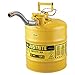 Justrite 7250230 AccuFlow 5 Gallon, 11.75" OD x 17.50" H Galvanized Steel Type II Yellow Safety Can With 1" Flexible Spout
