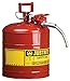 Justrite 7250130 Galvanized Steel, AccuFlow Type II Red Safety Can with 1" Flexible Spout, Large ID zone, Meets OSHA & NFPA For Handling Hazardous liquids. 5 Gallon (19L) Size.