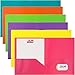 JAM PAPER Plastic 2 Pocket School POP Folders - Assorted Primary Colors - 6/pack