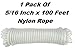 Katzco Nylon Rope Twisted Solid Braided 1 Roll of 1/8 Inch x 50 Foot Rope - for Camping, Sports and Outdoors, Construction, Moving, Furniture, Towing, Wheel and Axles, Boat Docks, and Fishing