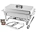 TigerChef 8 Quart Full Size Stainless Steel Chafer with Folding Frame and Cool-Touch Plastic on top - Includes 2 Free Chafing Gels and Slotted Serving Spoon (1, 8 Quart Chafer)…