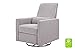 Storkcraft Premium Hoop Glider and Ottoman (White Base, Gray Chevron Cushion) – Padded Cushions with Storage Pocket, Smooth Rocking Motion, Easy to Assemble, Solid Hardwood Base