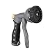 Premium Garden Hose Nozzle – All Metal Spray Gun Design. 8 High Pressure Spray Patterns. Pistol Grip Front Trigger w/Hands Free Clip. Solid Brass Flow Control Knob. Guaranteed Leak Proof (Smoke Gray)