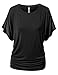 URBANCLEO Womens Dolman Sleeve Top Boatneck Drape Shirts-BLACK-2XL