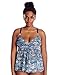 Free Country Women's Plus-Size Wavy Dot Flyaway Tankini, Wave Blue/Black, 1X