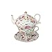 Gracie China by Coastline Imports 4-Piece Porcelain Tea for One, Stacked Teapot Cup Saucer, Blue Cottage Rose Chintz