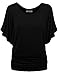 Amstt Womens Pure Color Short Sleeve Boat Neck Dolman Drape Tunics Top (XL, Black)