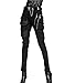 Minibee Women's Patchwork Leather Personalized Trousers Punk Style Black M