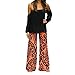 CHN'S Women High Waist Print Wide Leg Long Pants Bell-bottom Trousers