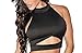 Womens Black Cut Out Open Back with Straps Sleeveless Cropped Outfit Short Top (US S, Black)
