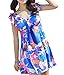 Geval Women's One Piece Slim Fit Floral Print swimsuits(Blue,S)