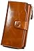 YALUXE Women's RFID Blocking Large Capacity Luxury Wax Genuine Leather Clutch Wallet Multi Card Organizer Brown Tan