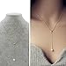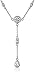 Sterling Silver Y Droplet Lariat Long Chain Necklace with Round Solitaire Bezel CZ Crystal Charm, Rhodium Plated 925 Silver, Adjustable Chain Length 16" - 18", with Jewelry Box