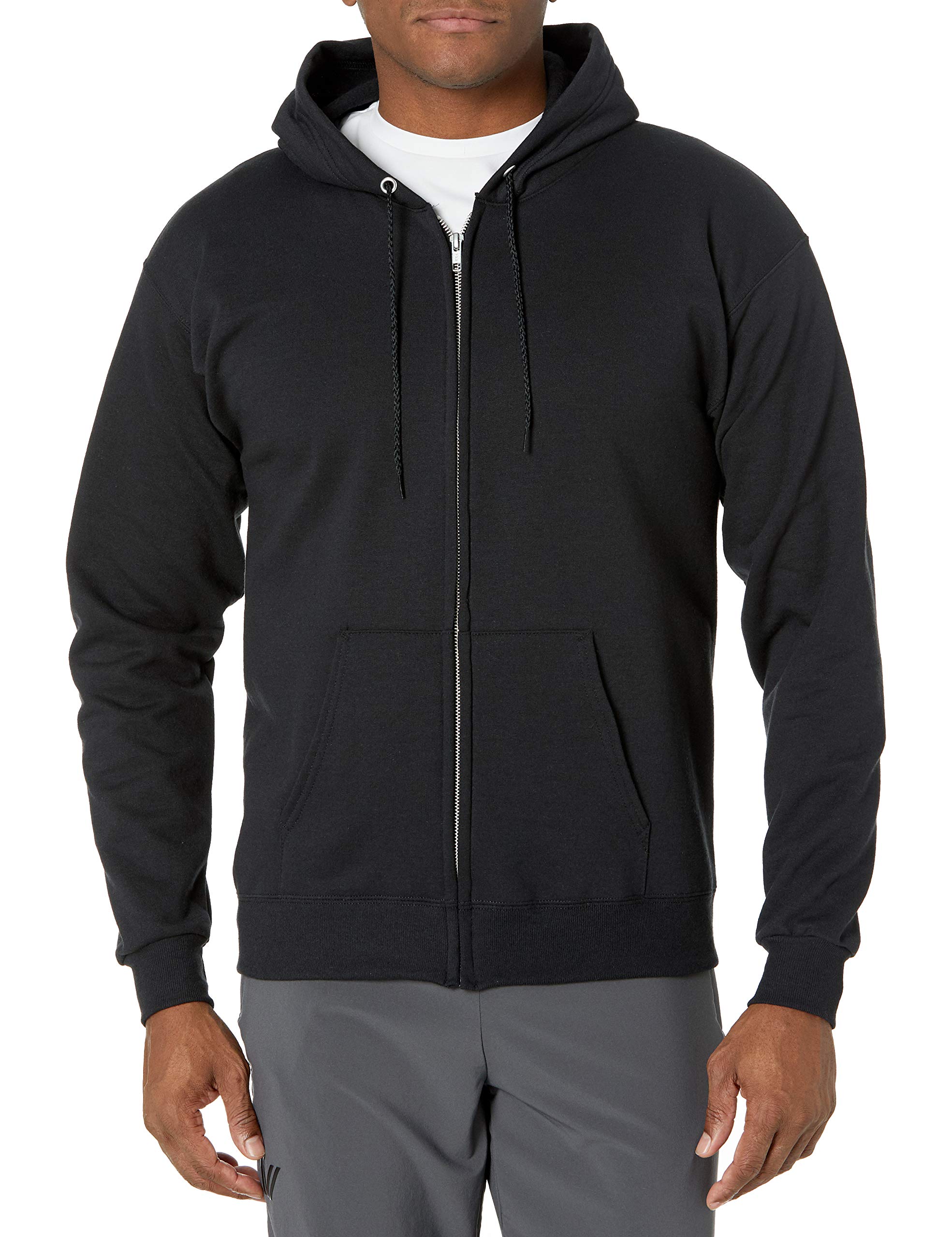 Hanes Men's Full Zip EcoSmart Fleece Hoodie, Black, Medium