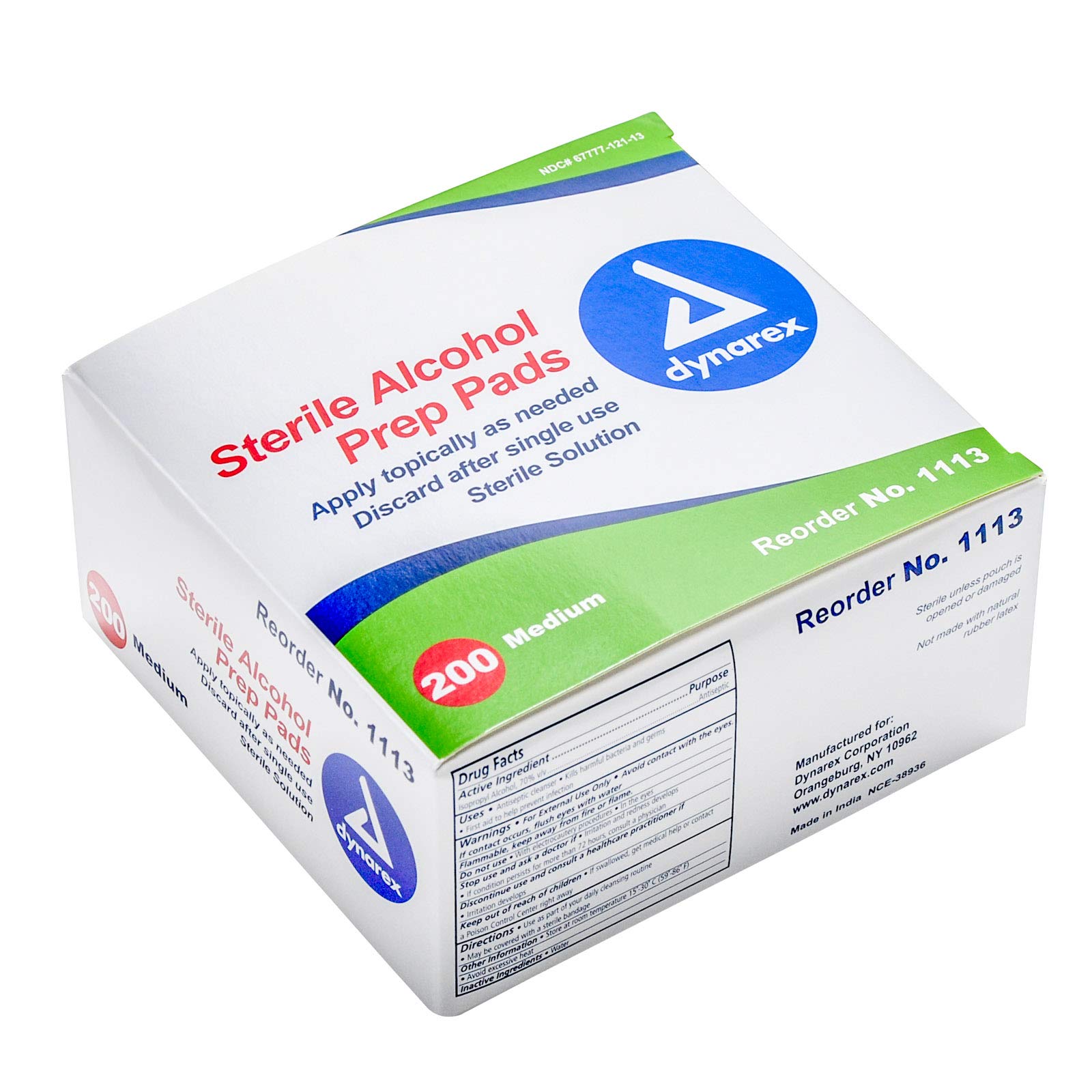 Dynarex 1113 Latex Free Sterile Alcohol Prep Pad, 10.4 Ounce (Pack of 400)