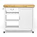 Crosley Furniture Rolling Kitchen Island with Natural Wood Top - White
