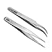 OULII 2pcs Precision Stainless Steel Rhinestones Eyelashes Nail Art Straight Curved Nippers Tweezers Picking Tools
