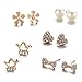 Pibupibu 5 Pack Crystal Weekly Stud Earrings Set, Hypoallergenic(bow,crown,pearls,flower,heart)
