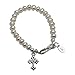 Girls First Communion Charm Bracelet with Simulated Imitation Pearl and Silver Tone Beads, 7 Inch