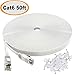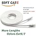 Cat 6 Ethernet Cable 50 ft White - Flat Internet Network Lan patch cords – Solid Cat6 High Speed Computer wire With clips& Snagless Rj45 Connectors for Router, modem – faster than Cat5e/Cat5 - 50 feet
