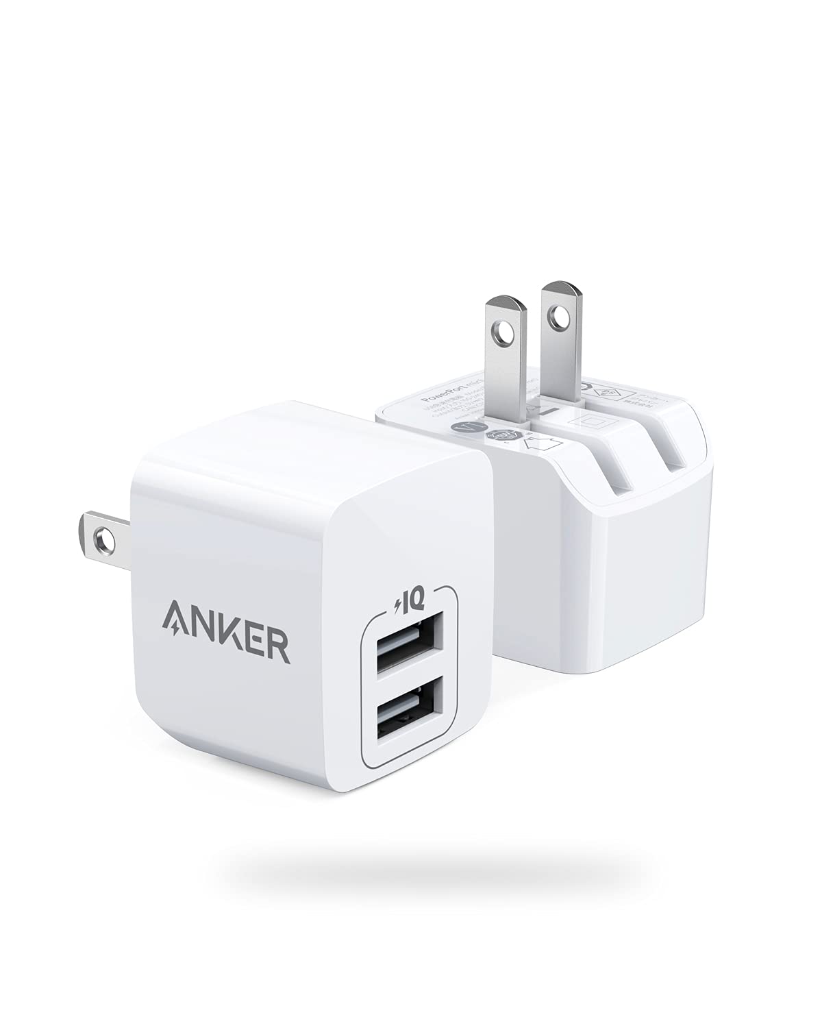 USB Charger, Anker 2-Pack Dual Port 12W Wall Charger with Foldable Plug, PowerPort mini for iPhone XS/ X / 8 / 8 Plus / 7 / 6S / 6S Plus, iPad, Galaxy Note 5 / Note 4, HTC, Moto, and More (2 Pack)